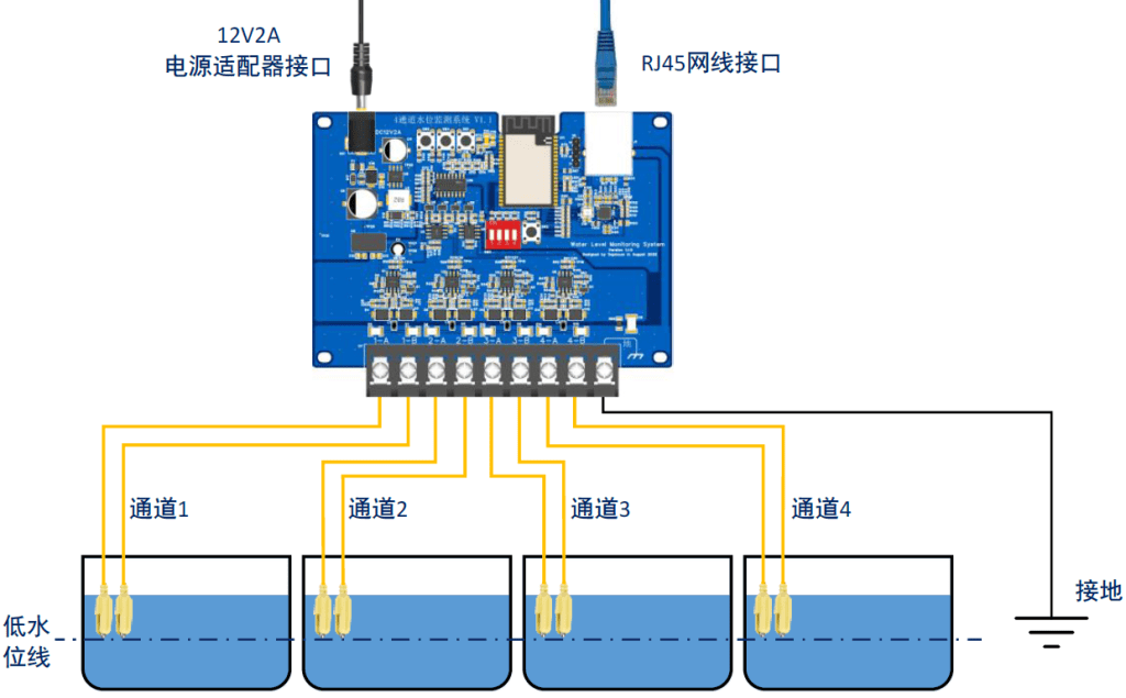 WLMS_V1.1.0 智能水位检测报警系统 (MQTT,4通道,WIFI,RJ45)